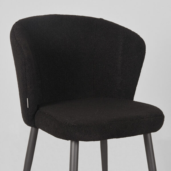 Eetkamerstoel Whirl van LABEL51, uitgevoerd in zachte zwarte teddystof is voorzien van een ergonomisch design waarbij de prachtige golvende vorm in de rugleuning ervoor zorgt dat stijl en comfort hand in hand gaan. Een charmante, ongecompliceerde eetkamerstoel vol mogelijkheden waar je heerlijk in zit om lekker lang te tafelen.
