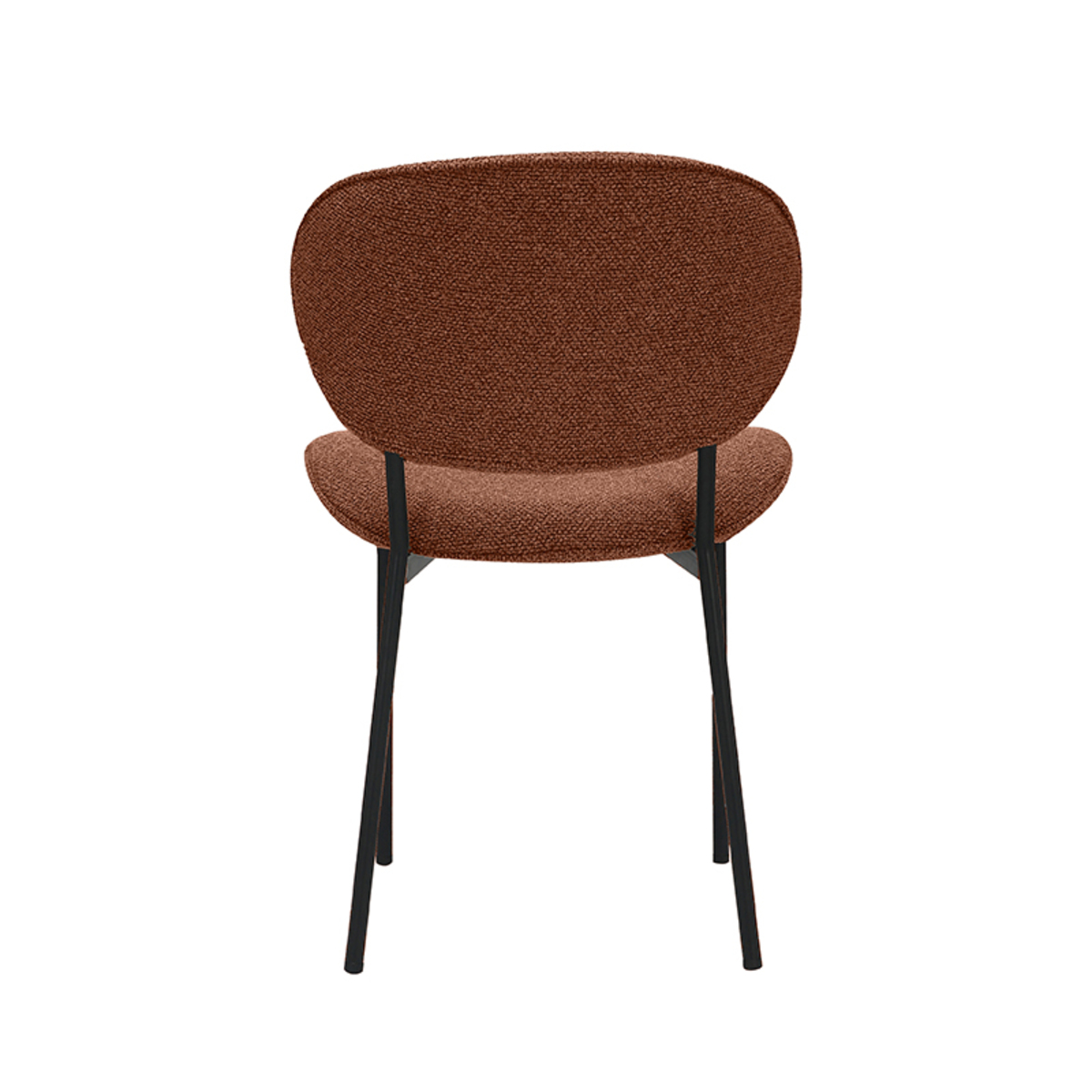 Eetkamerstoel Senn van LABEL51 geeft een minimalistische en eigentijdse toevoeging aan elke eetkamer. De stoel is uitgevoerd in de luxe stof royal bouclé in de kleur Coral, wat zorgt voor een zachte, comfortabele zitervaring en een speelse, warme uitstraling met een subtiele hint van roze-oranje tinten. Het strakke en eenvoudige ontwerp, gecombineerd met de organisch gevormde zitting en rugleuning, geeft de stoel een frisse en levendige uitstraling. De slanke, zwarte metalen poten vormen een stijlvol contrast met de opvallende coral bekleding, wat bijdraagt aan het moderne en minimalistische karakter van de stoel.