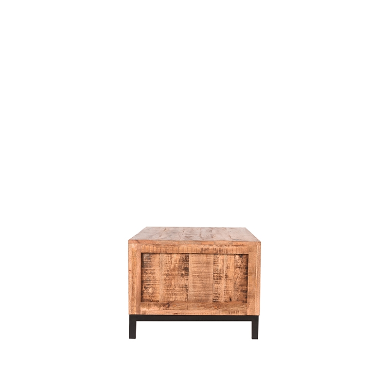 Salontafel Ghent van LABEL51 is met zijn ruwe mango houten oppervlaktes, gecombineerd met het zwart metalen onderstel een stoere en industriele tafel.