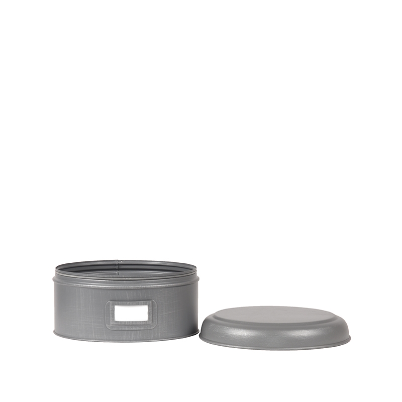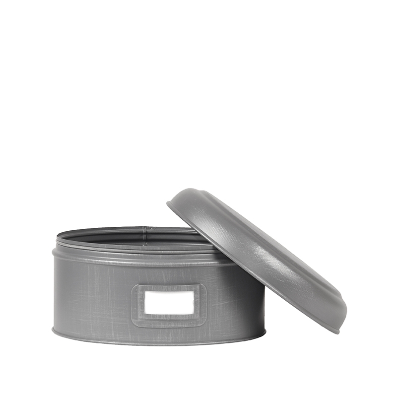 Opbergblik L van het merk LABEL51 is een rond metalen opbergblik in de kleur antiek grijs waar je heel veel spulletjes in op kunt bergen. Dit blik is niet alleen handig omdat je er alles in kunt bewaren, maar vormt tegelijk een mooi woonaccessoire.